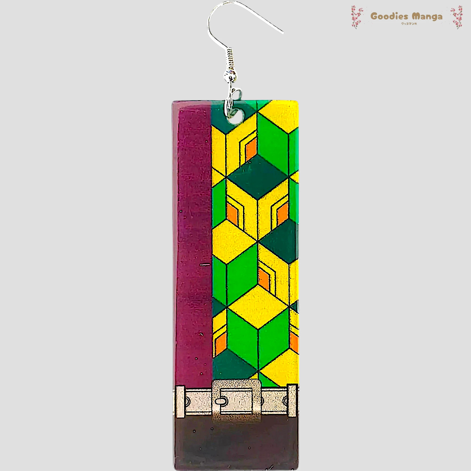 InspirĂ©es du haori asymĂ©trique de Giyu Tomioka, ces boucles dâoreilles reprennent les motifs gĂ©omĂ©triques rouge et turquoise qui symbolisent Ă la fois son passĂ© et sa place unique parmi les Piliers dans Demon Slayer: Kimetsu no Yaiba.