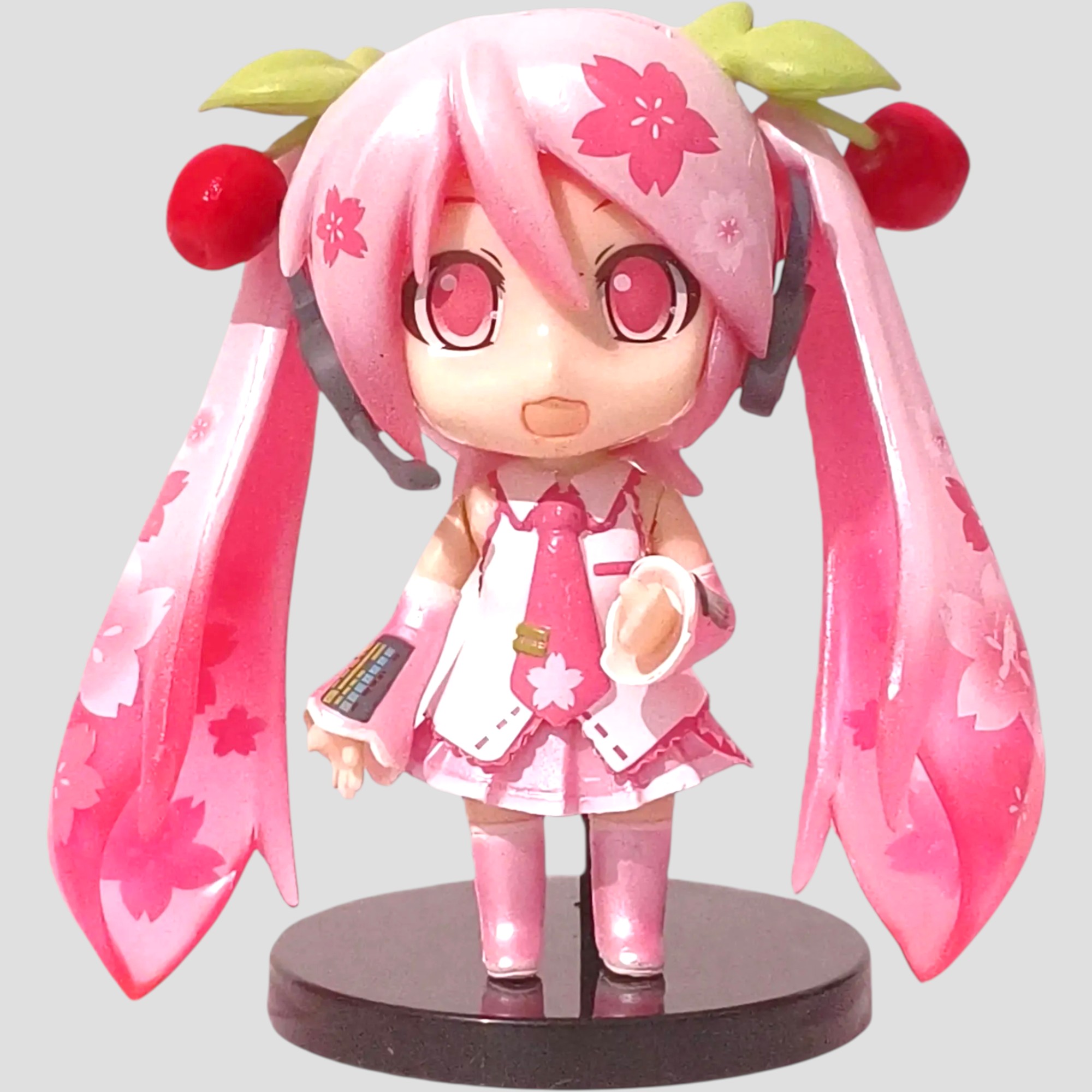 Découvrez cette figurine Chibi de Hatsune Miku de 10 cm, ornée de décorations cerises. Démontable et remontable, elle ravira les fans avec son design mignon et coloré. Parfaite pour toute collection !