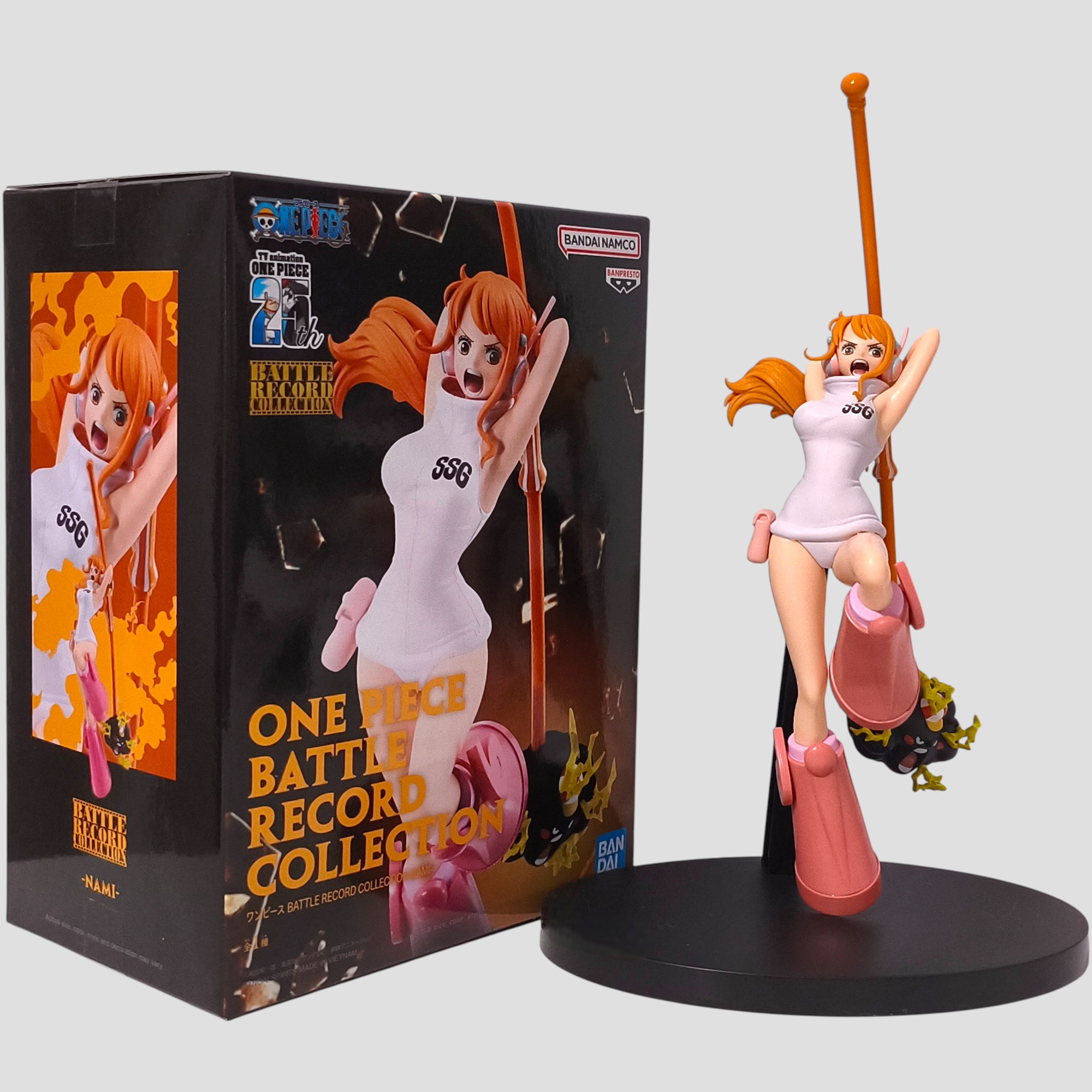 Découvrez la figurine Nami de la collection Battle Record de Banpresto. Mesurant environ 15 cm, elle capture l’esprit combatif de la navigatrice. Parfaite pour les fans de One Piece !