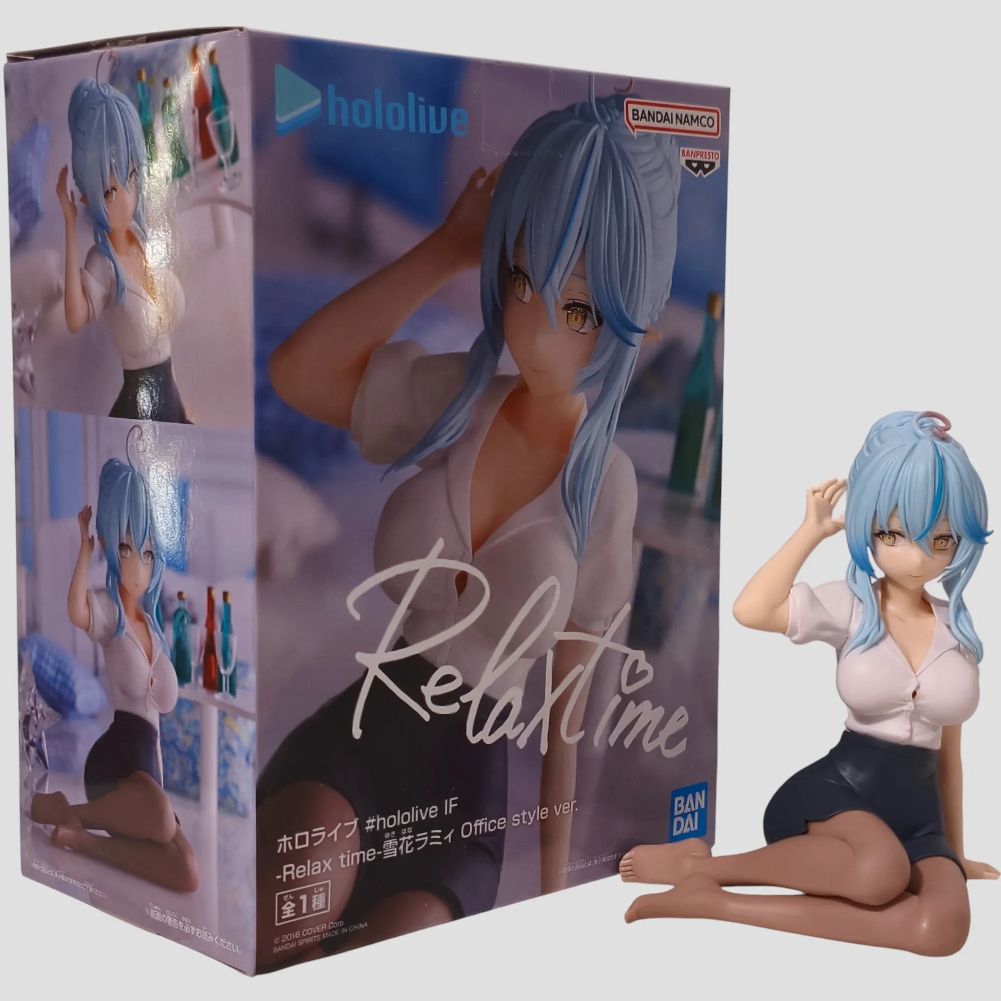 Découvrez la figurine Yukihana Lamy – Hololive Relax Time – Office Style Ver. ❄️🖇️ de Banpresto. Élégante et charismatique, elle mesure environ 12 cm, parfaite pour les fans et collectionneurs de VTuber.